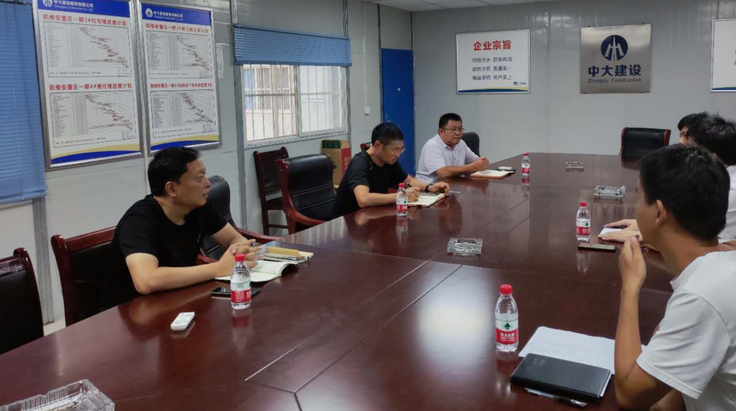 2020年8月7日,集團(tuán)黨委書(shū)記、董事長(zhǎng)楊振中帶領(lǐng)宏展地產(chǎn)公司相關(guān)人員到茹樓安置區(qū)現(xiàn)場(chǎng)辦公,聽(tīng)取了施工單位對(duì)項(xiàng)目開(kāi)展過(guò)程中遇到的問(wèn)題,并對(duì)項(xiàng)目后續(xù)建設(shè)提出要求。