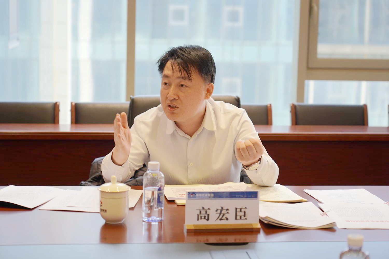 劉九利首先對高宏臣一行的到來表示熱烈歡迎,對國開行給予集團長期發(fā)展的關(guān)心支持表示衷心感謝,并簡要介紹了集團發(fā)展近況、戰(zhàn)略規(guī)劃等情況。他表示,當(dāng)前,南陽投資集團緊密圍繞中央、省、市重大方針政策,按照市委市政府的決策部署,錨定新定位、新目標(biāo)、新要求,加快結(jié)構(gòu)優(yōu)化升級,全力構(gòu)建主強輔優(yōu)、多元發(fā)展、多極支撐的協(xié)同發(fā)展格局,謀劃并實施了一批大項目,與國開行河南省分行合作的潛力與空間巨大。國開行河南省分行與南陽投資集團有著良好的合作基礎(chǔ),雙方應(yīng)進一步堅定信心、真抓實干,積極精準(zhǔn)對接,為雙方合作縱深發(fā)展、良性互動做足準(zhǔn)備,持續(xù)為南陽高質(zhì)量發(fā)展加碼賦能。